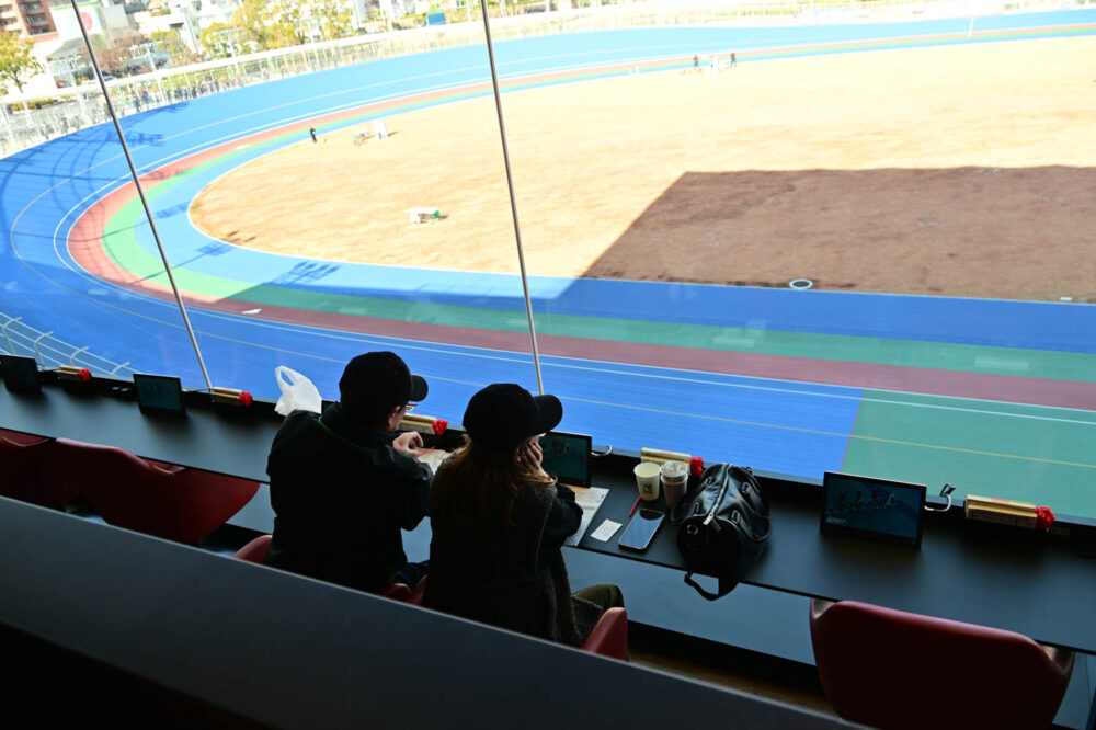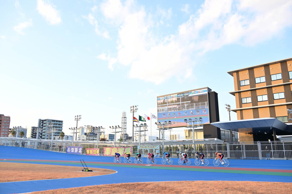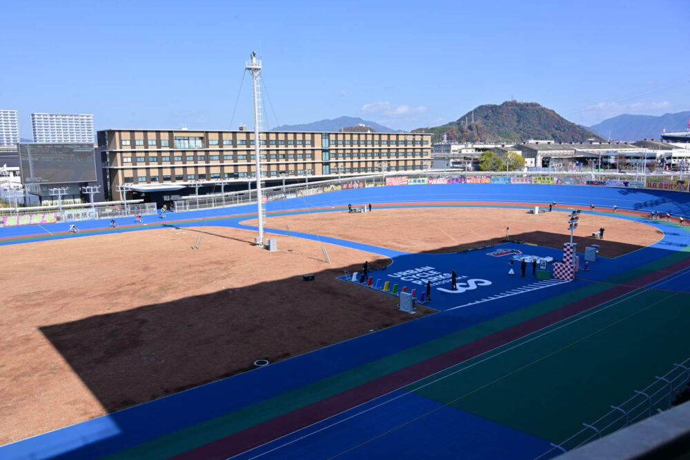 取材日にはFIが開催されていて、レースを走った数名のS級選手にバンクの印象を聞いたところ、ほとんどの選手が「軽いバンクで自力選手にも有利なバンクだ」という事でした。ただし、海が近い分、冬場は風が強いので、バックが向かい風になり重くなるそうで、そこは警戒ですね。