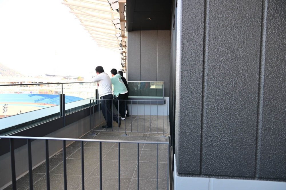 ラグジュアリールームにはバンク側にデッキもついていて、オープンエア観戦の楽しみも味わえるのが嬉しい