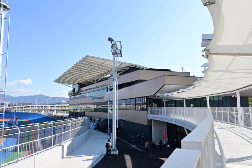 全く新しくなった広島競輪場は、施設も全面刷新され、観戦エリアがバンクに近く、走っている選手たちを間近に感じられる競輪場です。