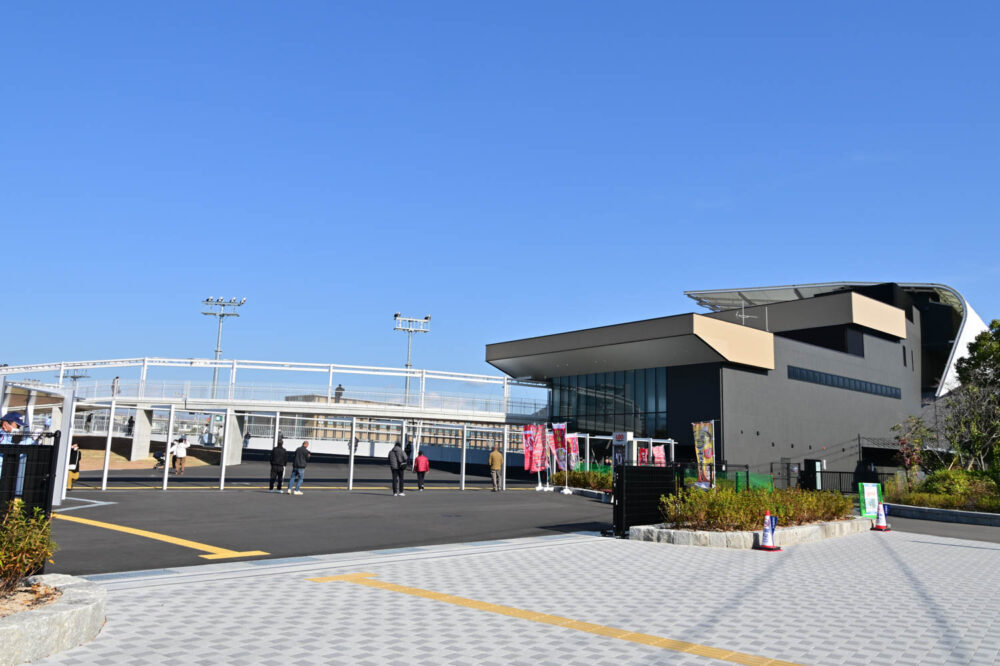 スタンド棟2階から伸びる空中歩廊