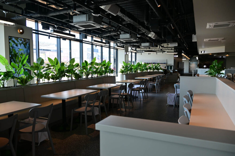 1階にあるイベントステージ。大きなビジョンがある