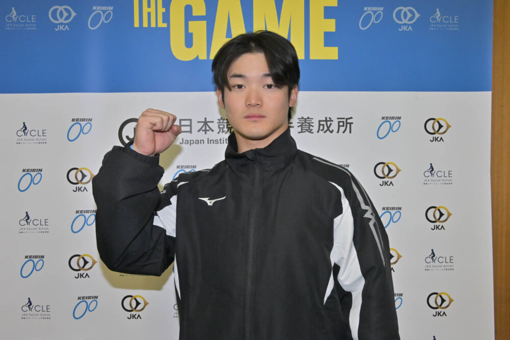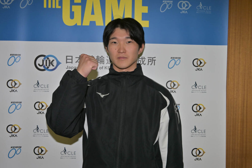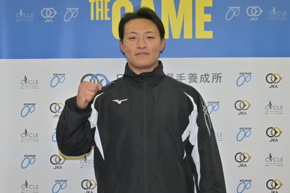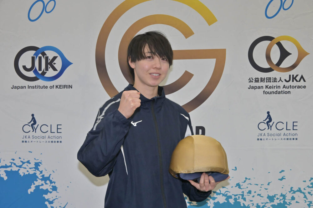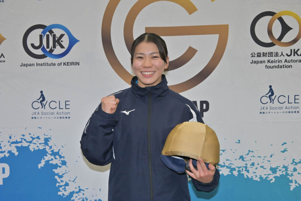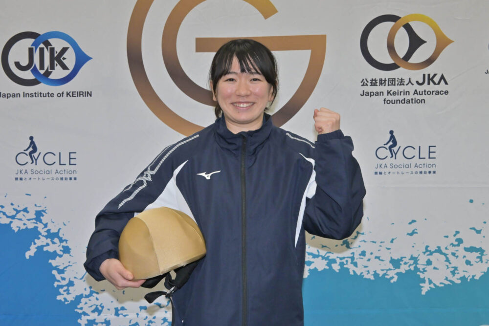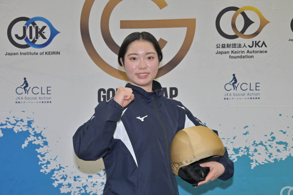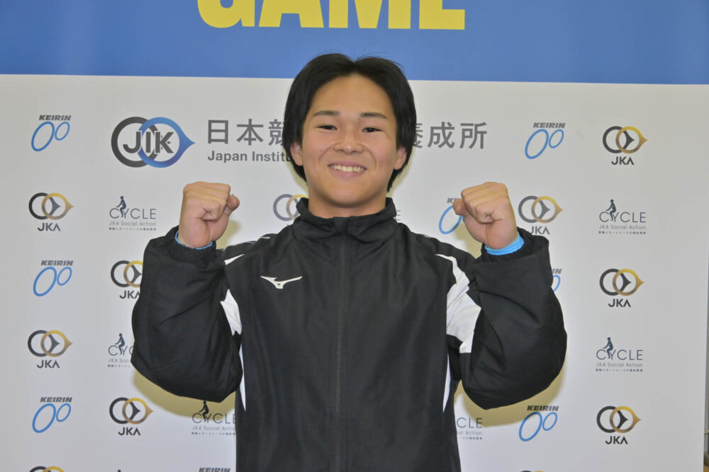 「ゴールデンキャップを獲れると思ってなかったので、とても嬉しいです。練習ではタイムが出ていたので、本番でもしっかり力を出し切れたことがよかったと思います。中学で野球をしていましたが、それ以降は高校も大学も特にスポーツはしていませんでした。就職活動の際に、競輪のコマーシャルを見て、未経験者でもなれる適性試験を知って、やってみようと思いました。デビューしたら強い先行選手になりたいです。そのためには今回出せたタイムを競輪の強さにできるように練習を頑張っていきたいです」